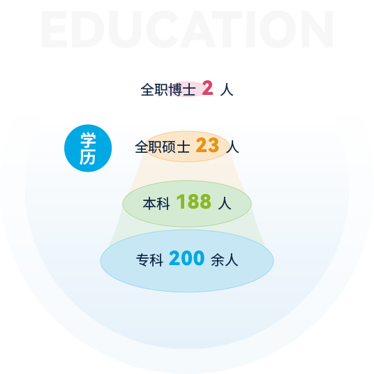 截止2024年,公司擁有各類人才400余人,其中全職博士2人,全職碩士23人,本科188人,專科200余人,注冊(cè)會(huì)計(jì)師12人,專利代理師9人,軟件工程師7人,技術(shù)交易經(jīng)紀(jì)人5人,南京企服中心等各類機(jī)構(gòu)外聘專家6人,公司還和南京大學(xué)、東南大學(xué)、南京農(nóng)業(yè)大學(xué)、南京信息工程大學(xué)、南通大學(xué)、江蘇開放大學(xué)等建立了良好的合作關(guān)系。